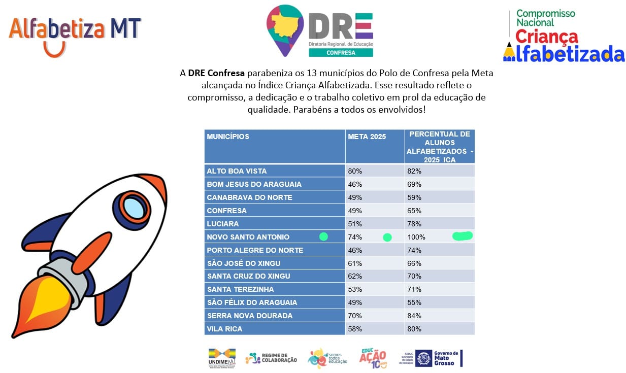 No estado de Mato Grosso, Novo Santo Antônio é o único município a integrar essa lista, consolidando-se como referência em políticas públicas educacionais voltadas à alfabetização.
